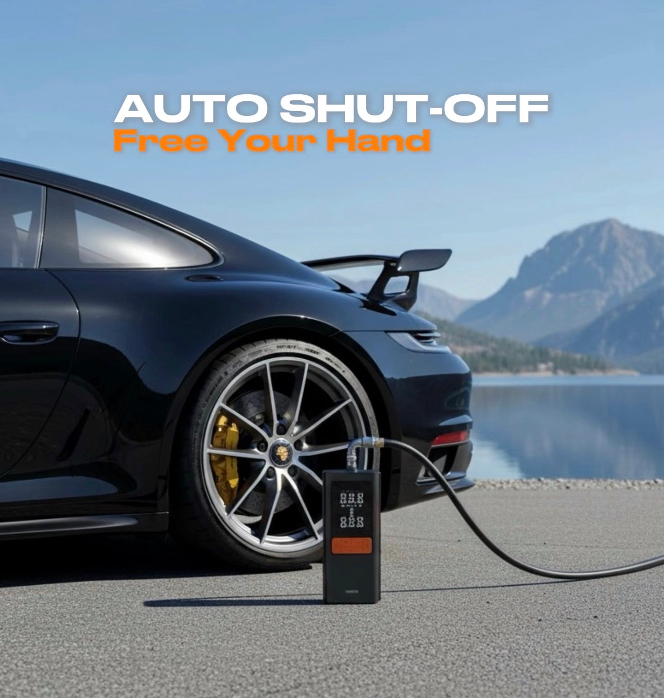 Experience effortless inflation with the T9’s preset modes for cars, motorcycles, bicycles, and sports balls. Simply select, start, and relax — it automatically shuts off when reaching your chosen pressure level. No need for constant checks.